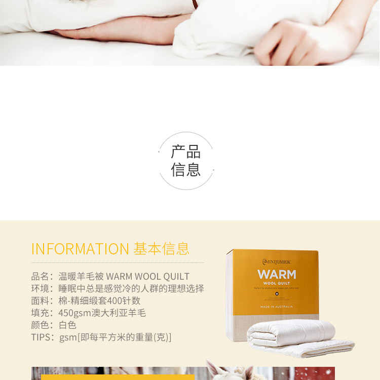 澳洲直邮 Minijumbuk Warm 厚款羊毛被 单人140cm x210cm