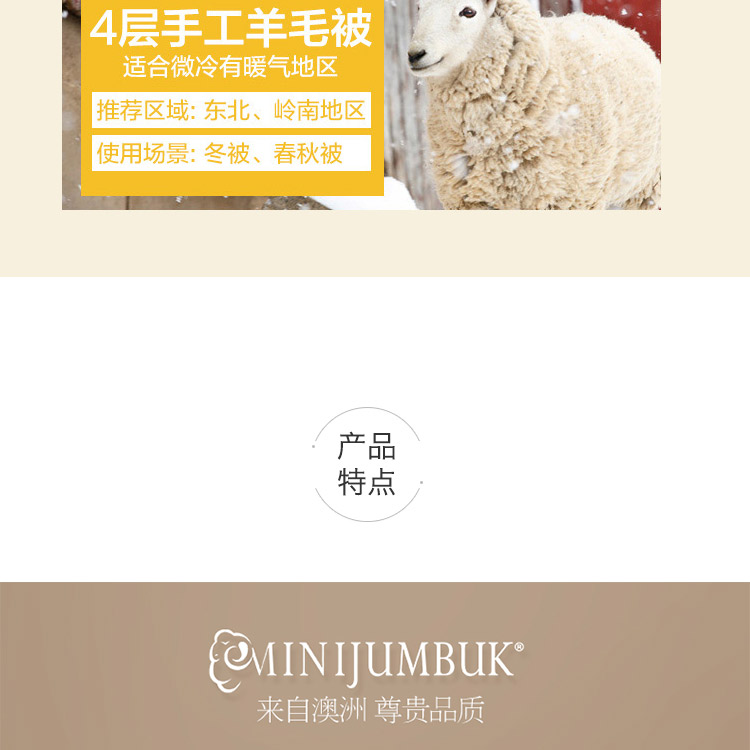澳洲直邮 Minijumbuk Warm 厚款羊毛被 皇后210cm x 210cm
