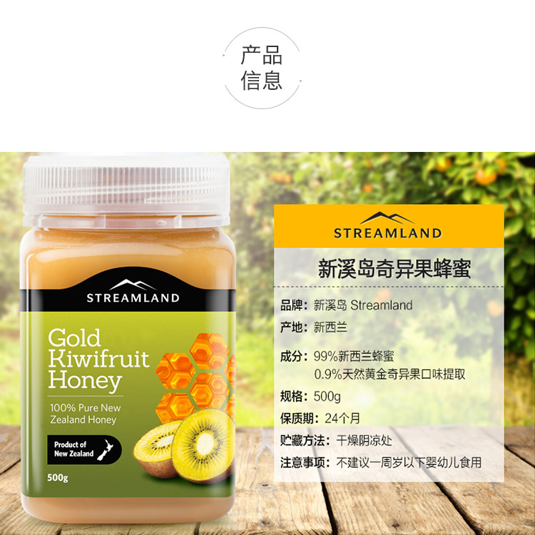 特价促销 保质期 2019年5月 Streamland金猕猴桃蜂蜜 500g