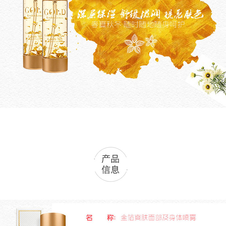 特价促销 保质期 2019年7月Linden leaves 金洋甘菊精油23K金箔保湿喷雾100ml