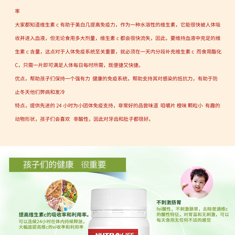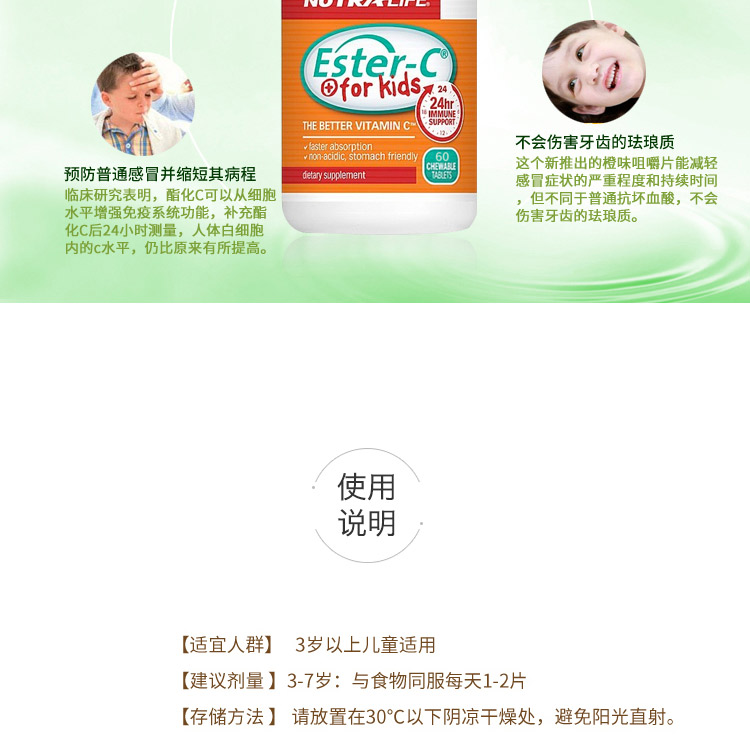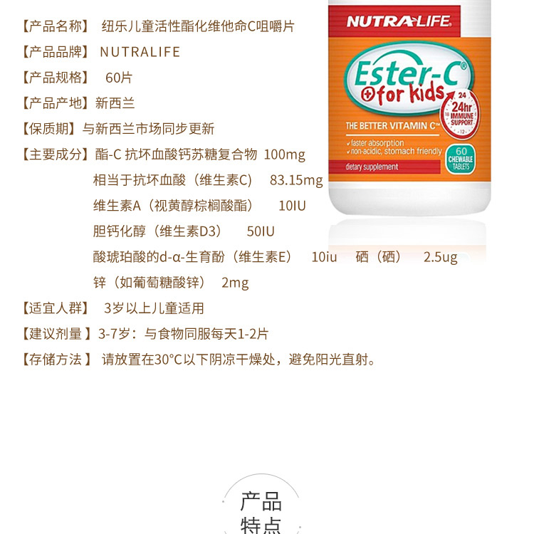 首页保健产品维生素类Nutra-Life 纽乐儿童ESTER-C酯化型维生素C 咀嚼片60片咀嚼片