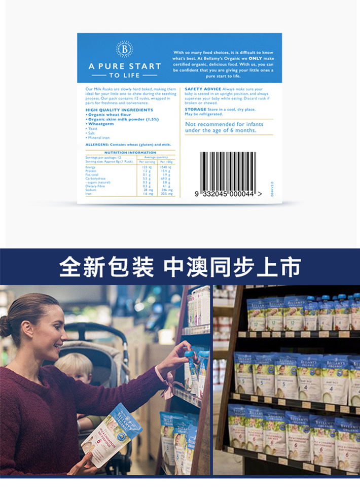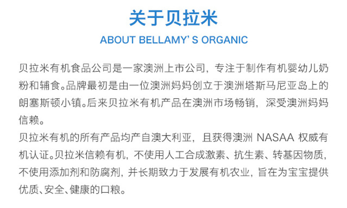 Bellamy’s 贝拉米有机米粉米糊原味 4月以上 125g
