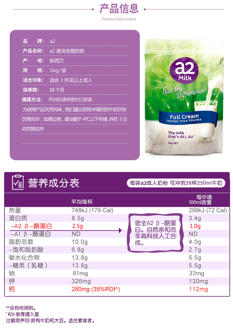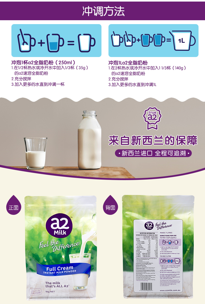 A2 全脂奶粉3岁以上人群 1公斤装