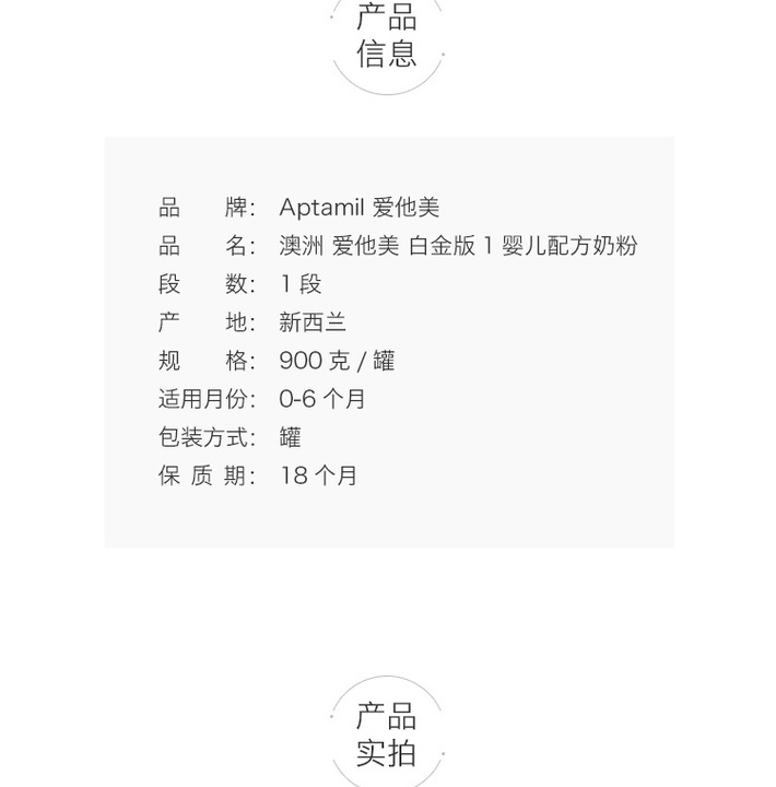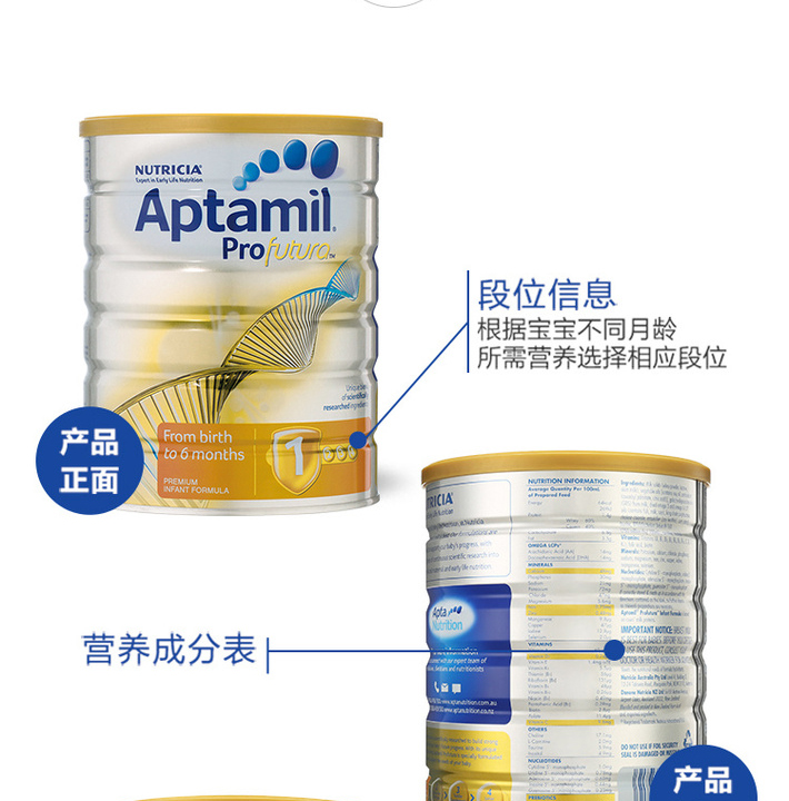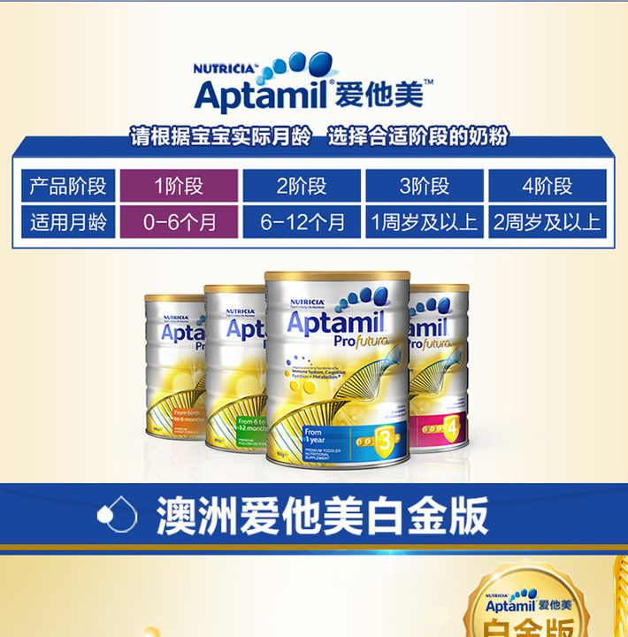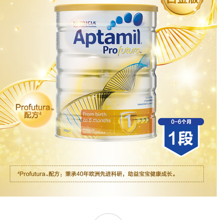 Aptamil爱他美白金版婴儿奶粉1段(0-6个月)Profutura 900克