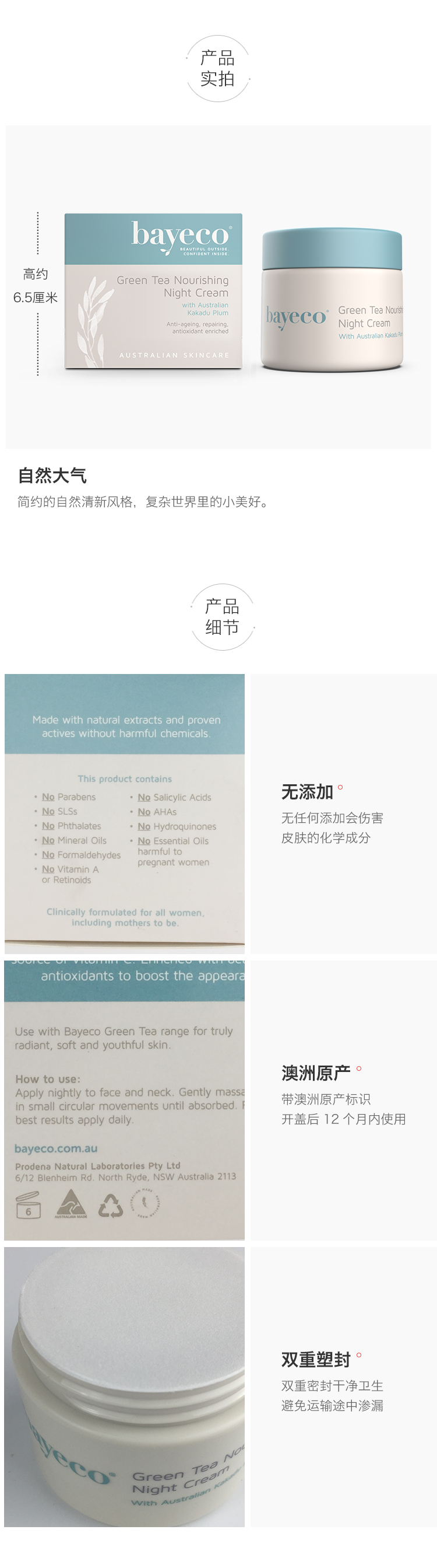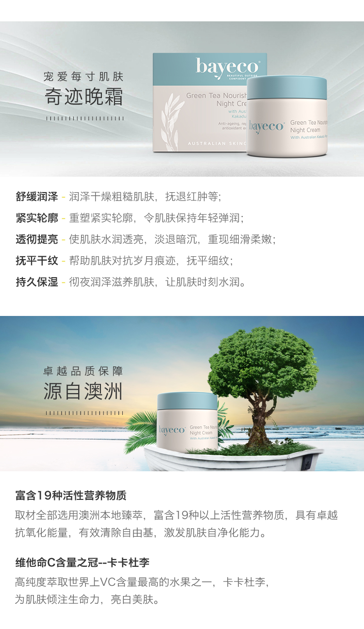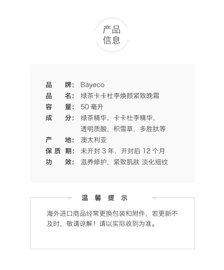 Bayeco 绿茶卡卡杜李晚霜 奇迹修护小绿瓶 保湿抗氧化