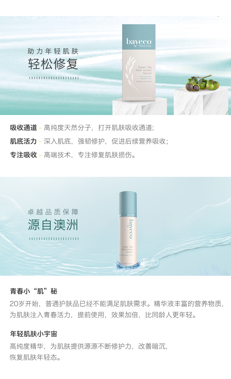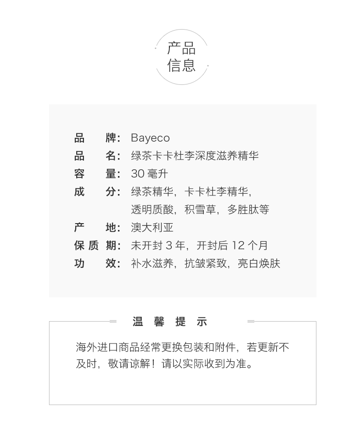 Bayeco 绿茶卡卡杜李精华液 轻松修复 保湿抗氧化