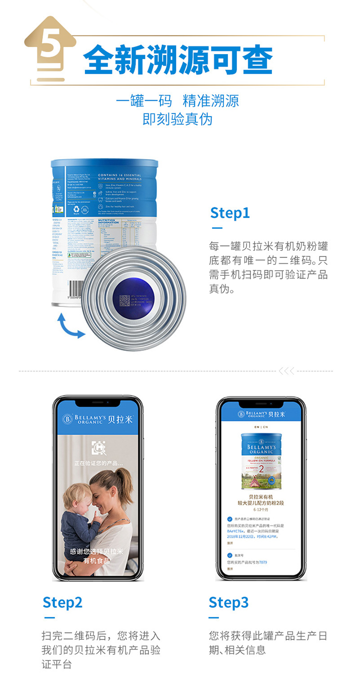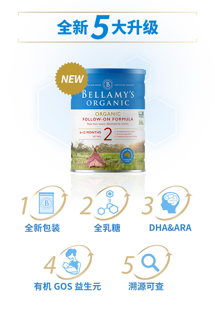 Bellamy’s 贝拉米有机婴儿配方奶粉 2段900克(6个月+)