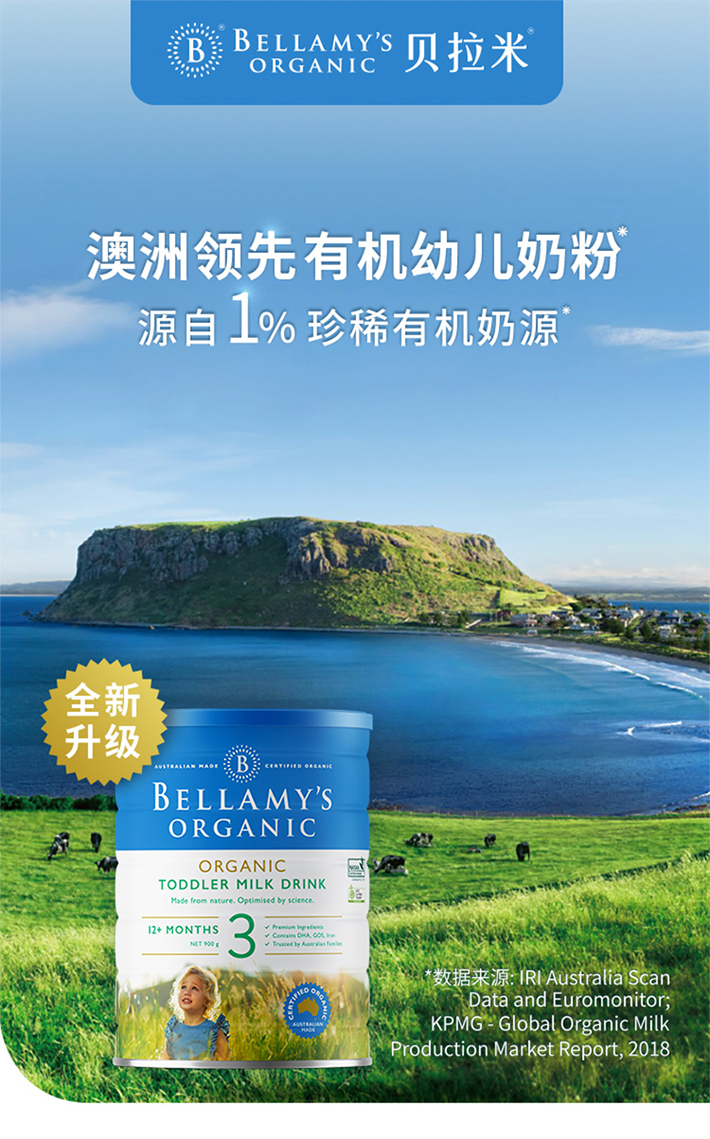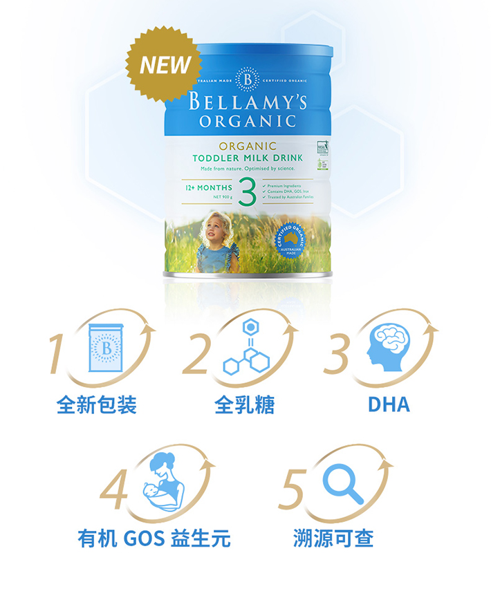 Bellamy’s 贝拉米有机婴儿配方奶粉 3段900克(12月+)