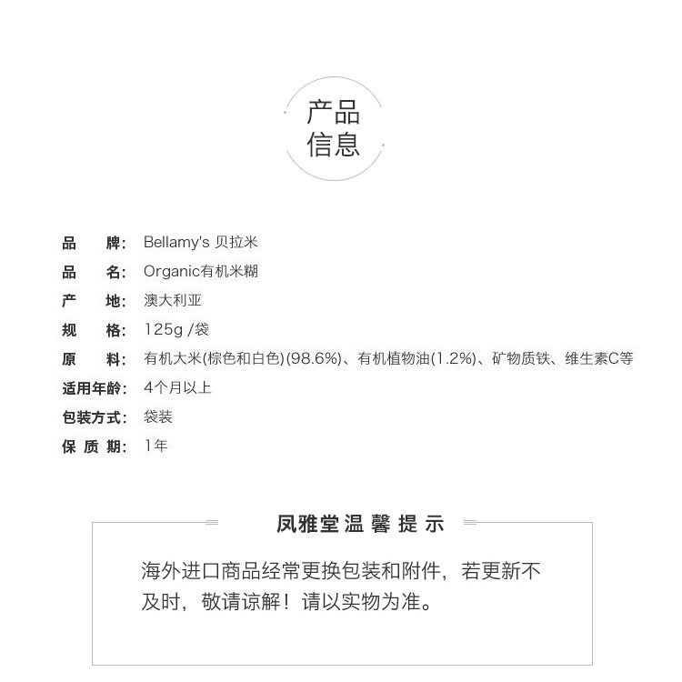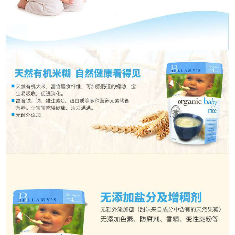 Bellamy’s 贝拉米有机米粉米糊原味 4月以上 125g