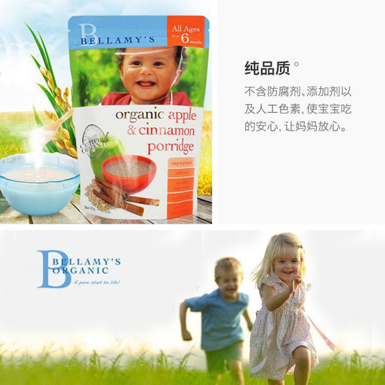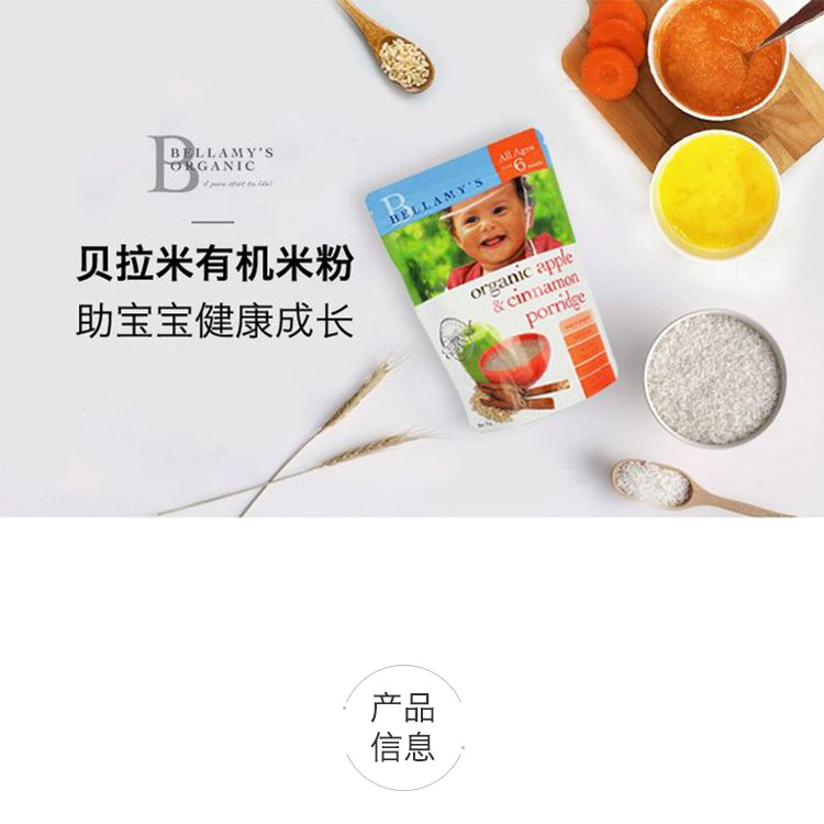 Bellamy’s 贝拉米有机苹果肉桂燕麦米粉米糊 含铁丰富 6M+