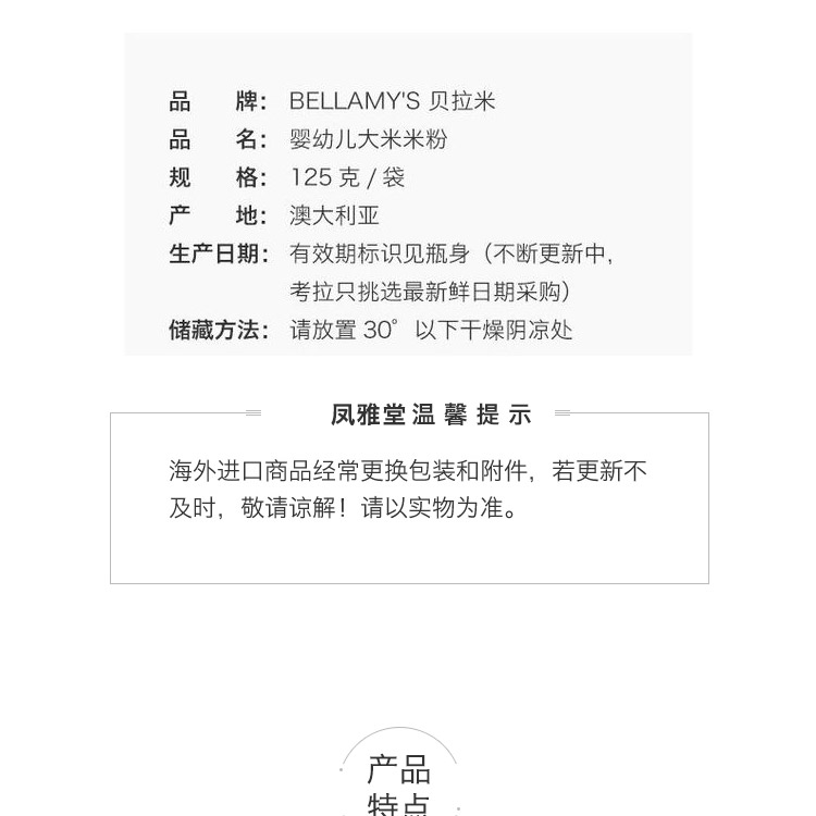Bellamy’s 贝拉米有机米粉米糊原味 4月以上 125g