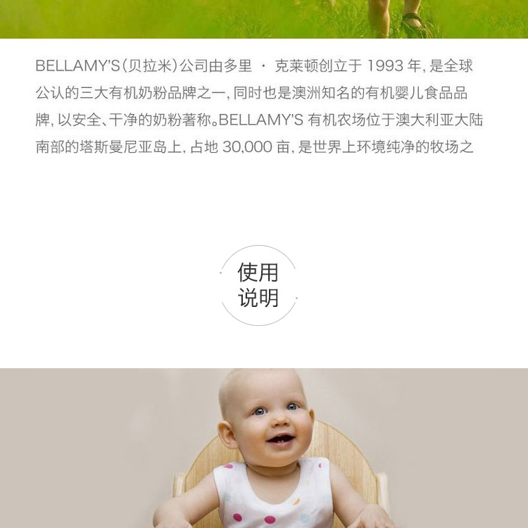 Bellamy’s 贝拉米有机婴儿配方奶粉 2段900克(6个月+)