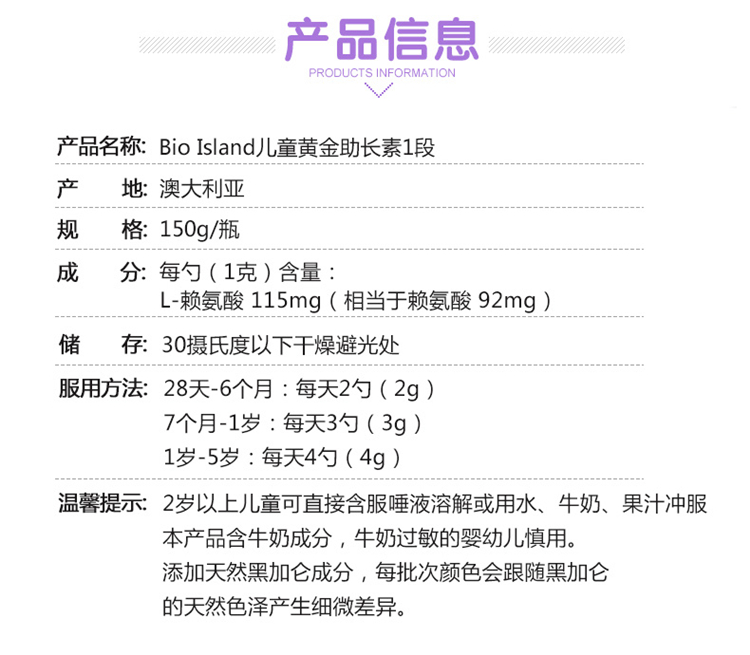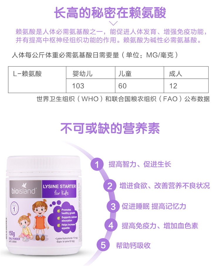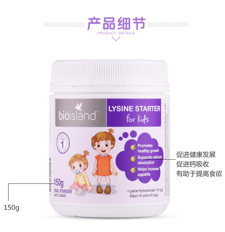Bio island黄金助长素儿童青少年赖氨酸1段150g