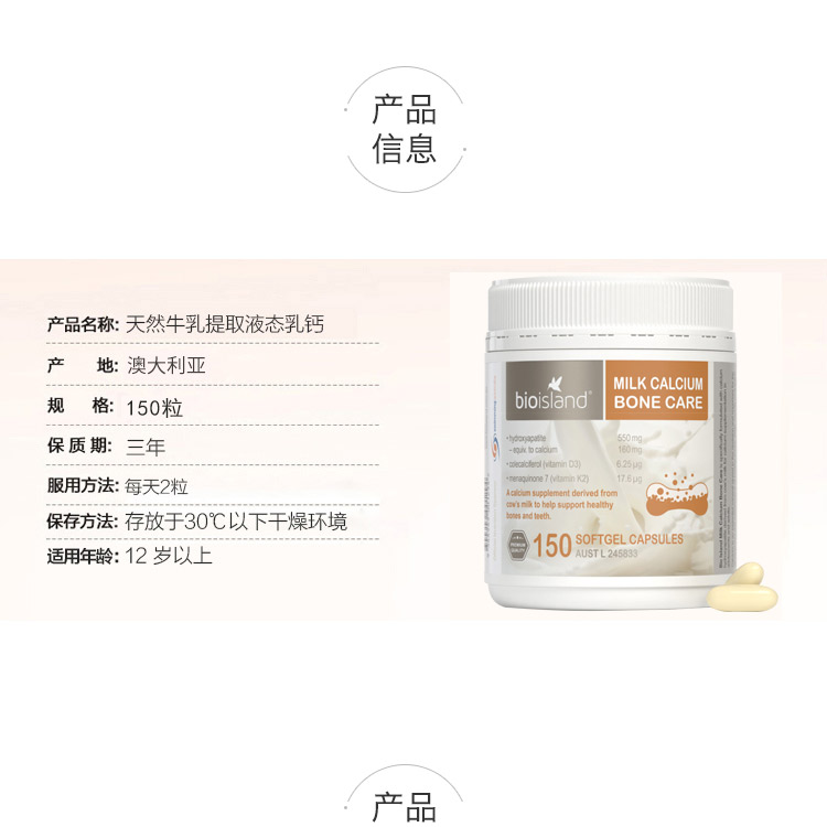 Bio island 乳钙骨护理软胶囊 150粒