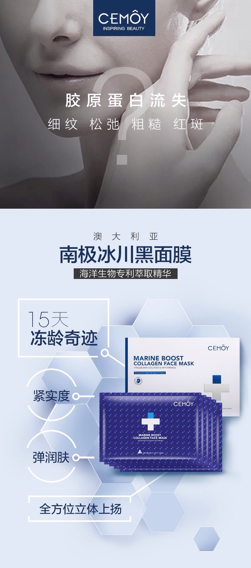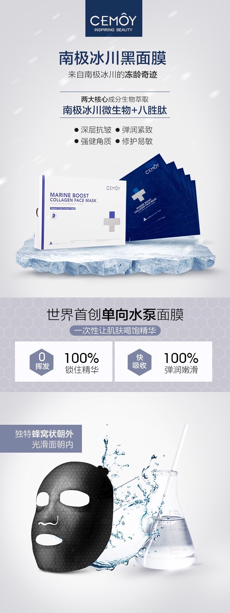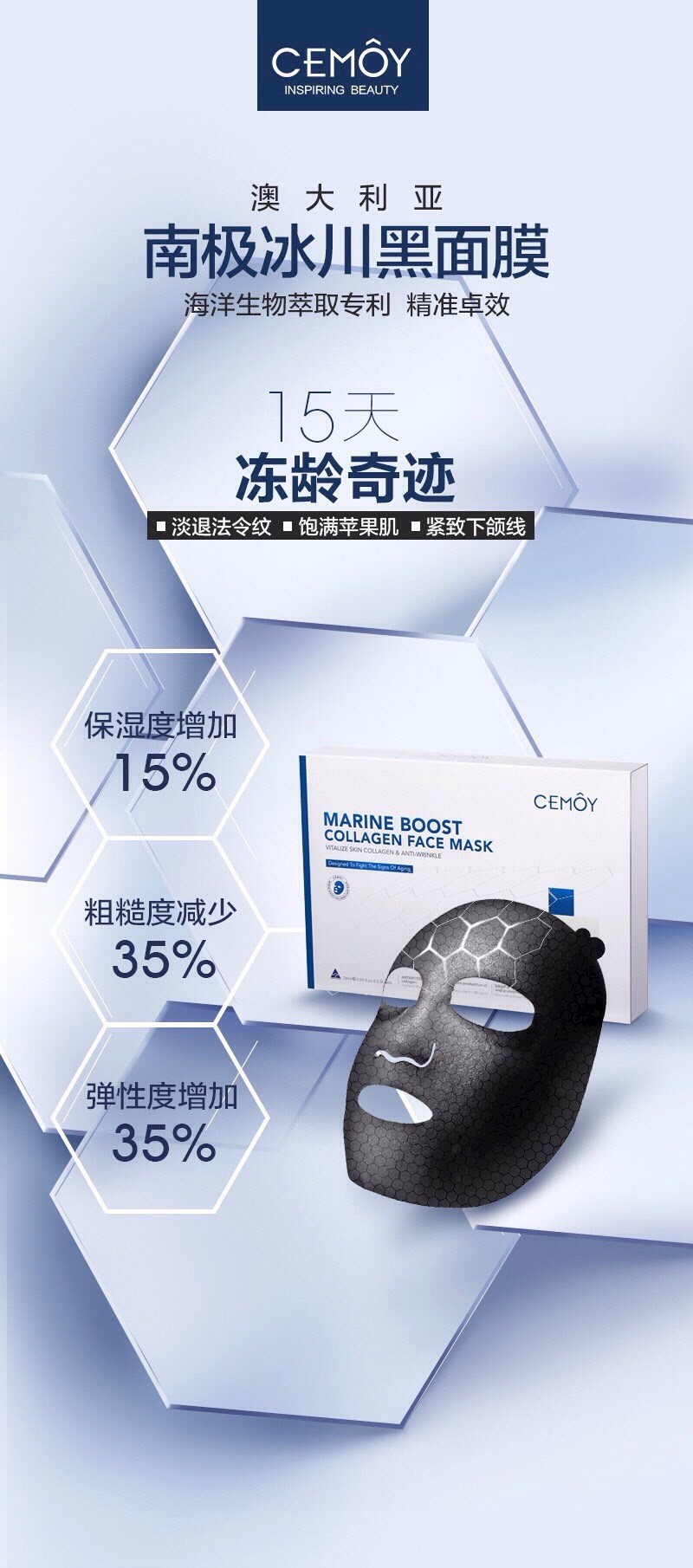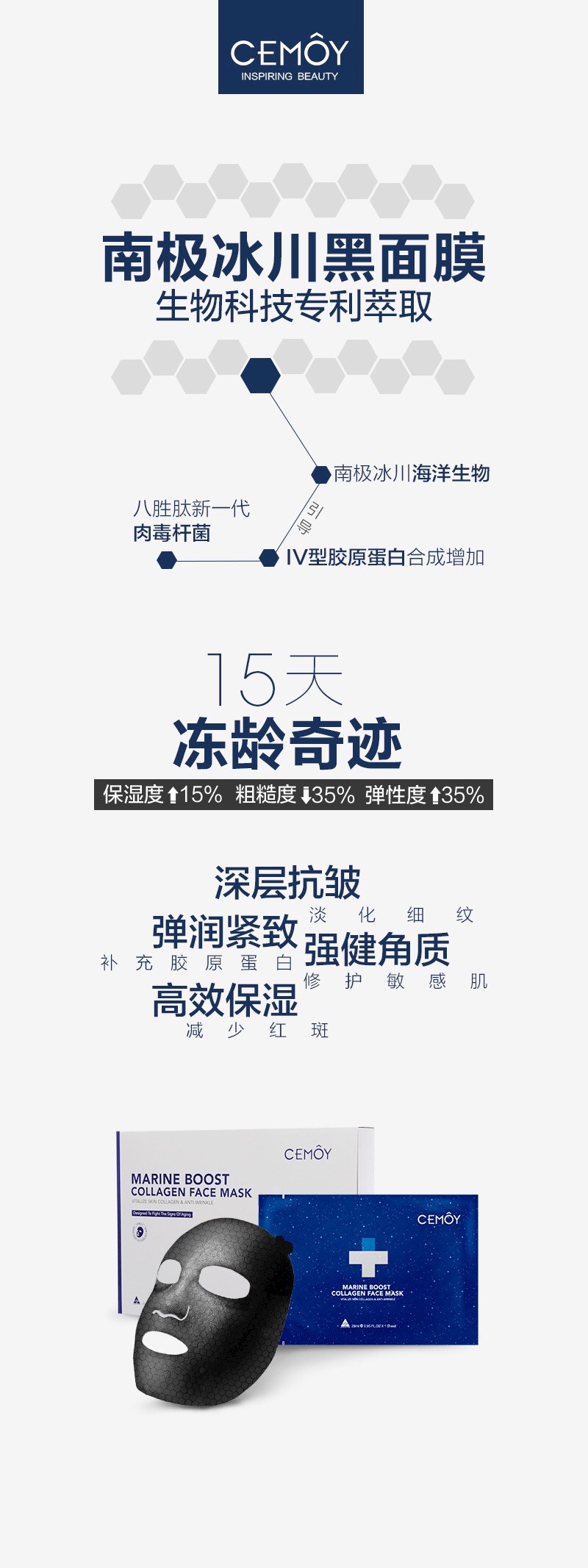 Cemoy 安瓶 南极冰川黑面膜 淡细纹紧致皮肤 5片装