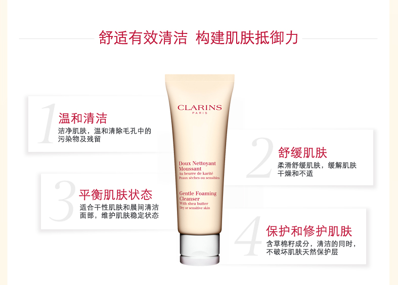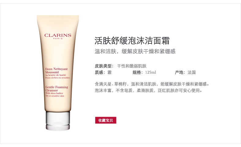 Clarins 娇韵诗 活肤舒缓泡沫洁面霜125ml 清洁残污洗面奶缓解干燥