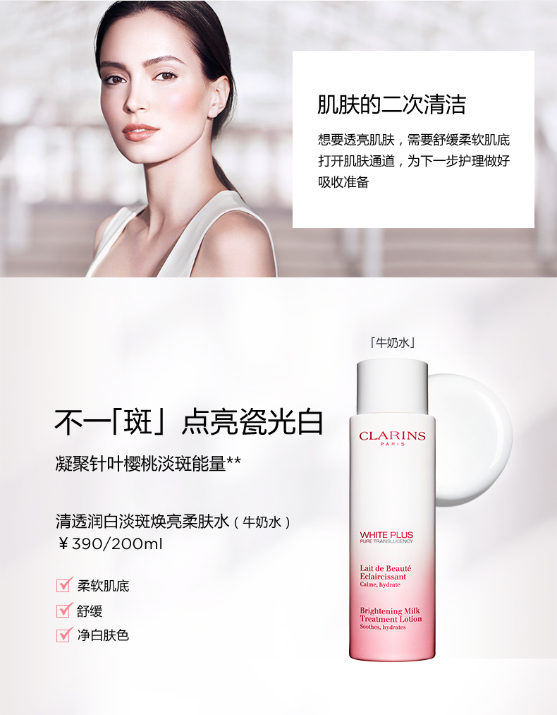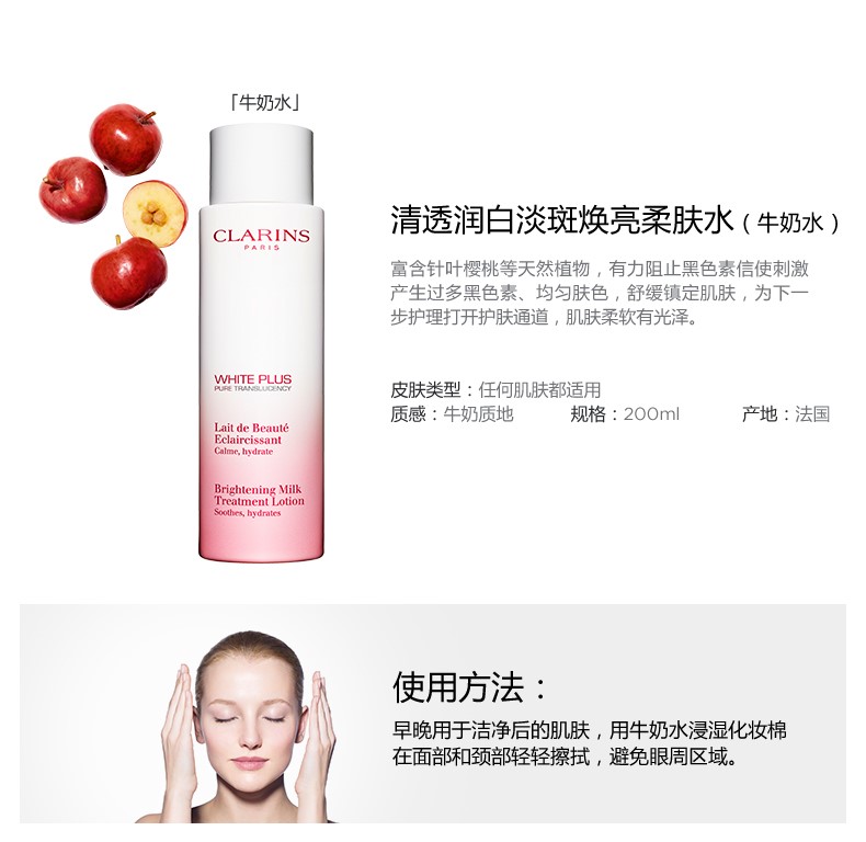 Clarins 娇韵诗 清透润白淡斑焕亮柔肤水滋润型200ml 补水保湿滋润牛奶水