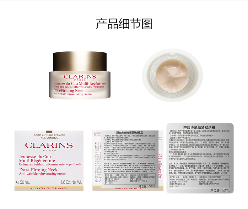 Clarins 娇韵诗 焕颜紧致颈霜50ml 淡化颈纹提拉紧致抗皱年轻