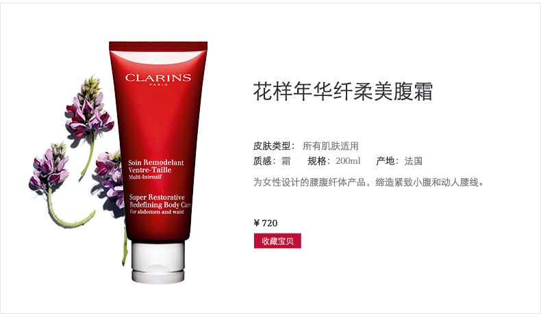 Clarins 娇韵诗 花样年华纤柔美腹霜200ml 提拉紧致腹部筷子腰