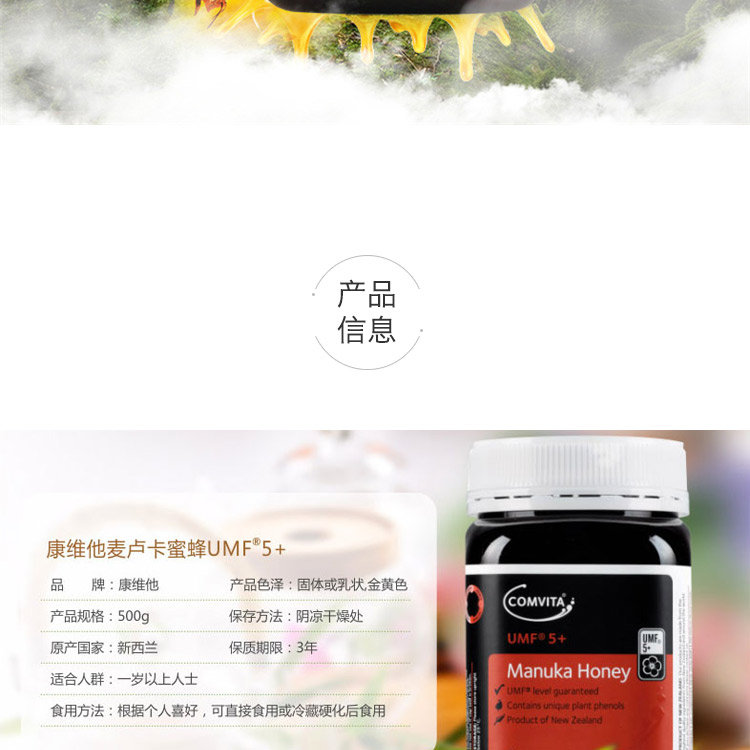 Comvita康维他麦卢卡天然蜂蜜UMF5+ 500G