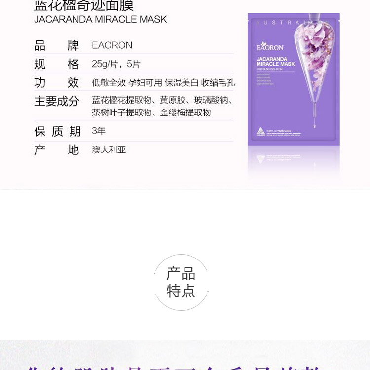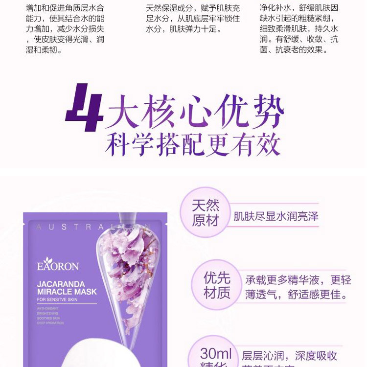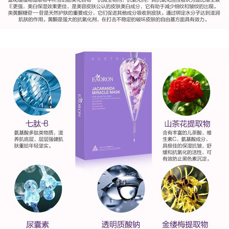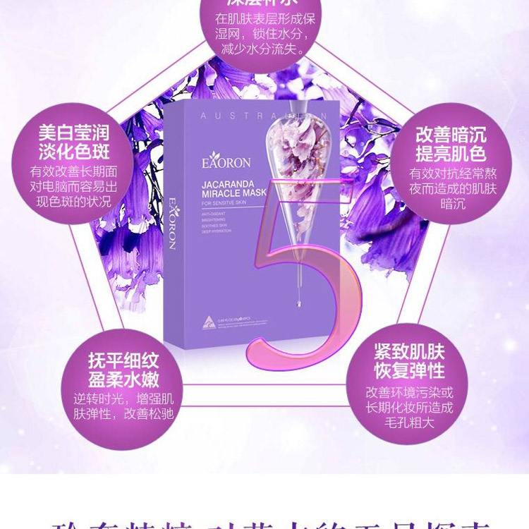 Eaoron 水光针 蓝花楹补水美白滋润面膜 5片装