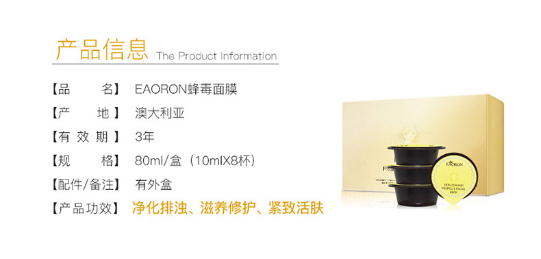 Eaoron 水光针 蜂胶蜂毒面膜保湿补水睡眠面膜紧致肌肤涂抹式10ml*8盒