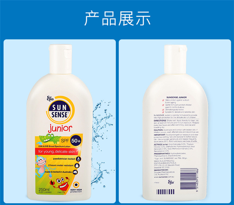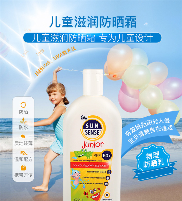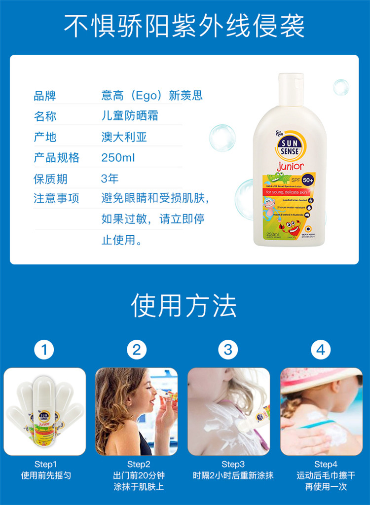 Ego 宝宝儿童防晒乳50+户外海边防水防紫外线250ml