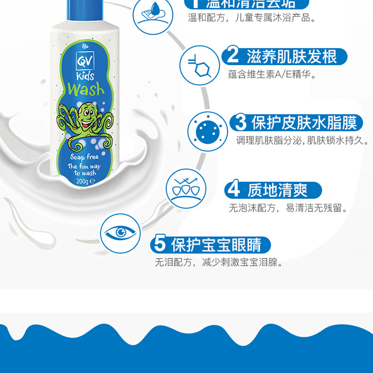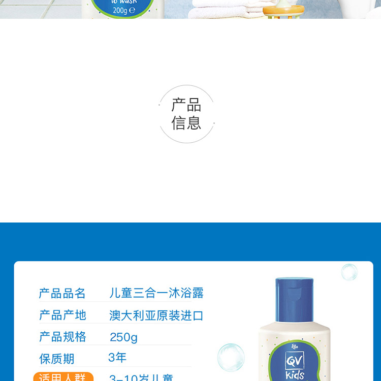 Ego QV儿童3合1 洗护洁面洗发沐浴液200g