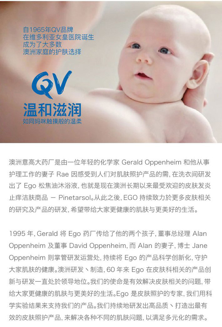 Ego QV婴儿角鲨烷滋润保湿霜250g 按压款