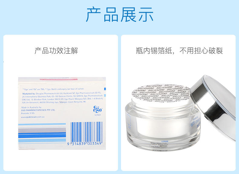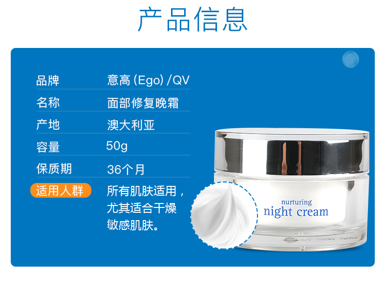 Ego QV面部修护晚霜 补水保湿润肤霜 去黄舒缓肌肤