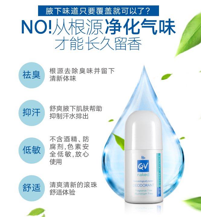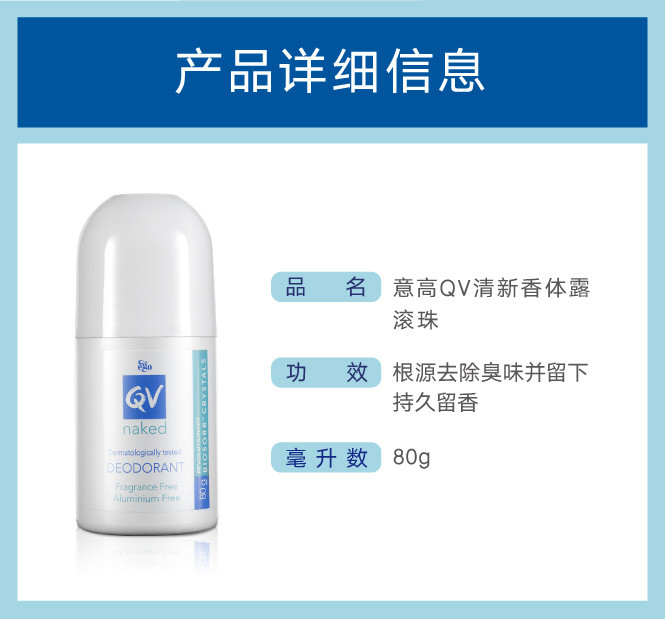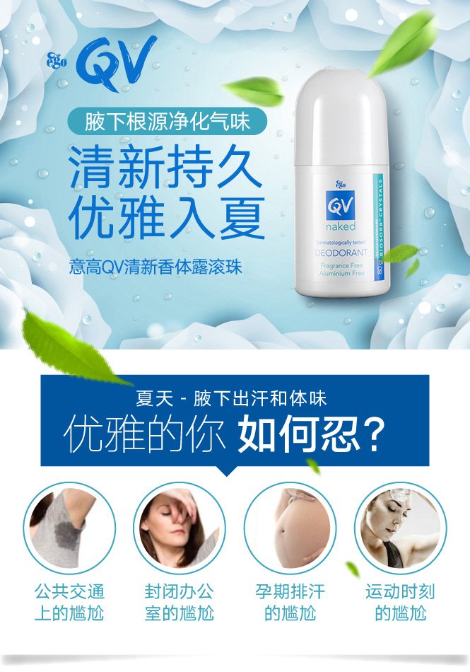 Ego QV 止汗露腋下去味走珠 爽身除汗滚珠男女士抑汗80g澳洲进口