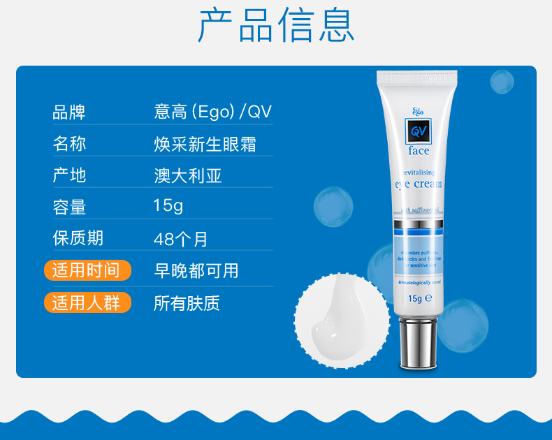 Ego QV 补水紧致提拉眼霜保湿眼霜 淡化细纹抗皱滋润女15g