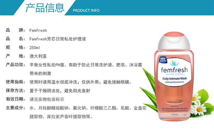 Femfresh 女性私处护理洗液含芦荟 洁净止痒 250ml