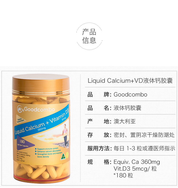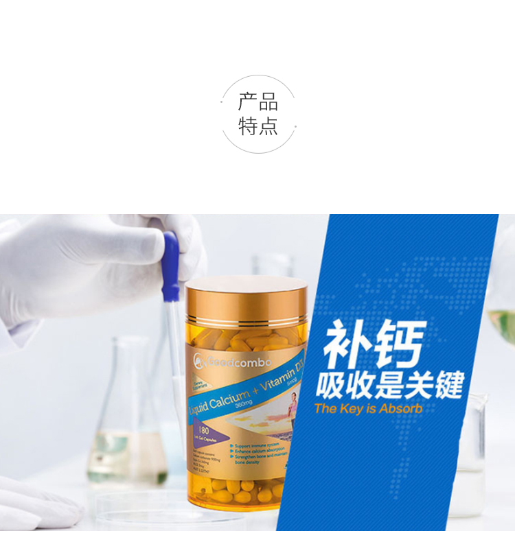 Goodcombo 液体钙+维生素D3复合胶囊 180粒