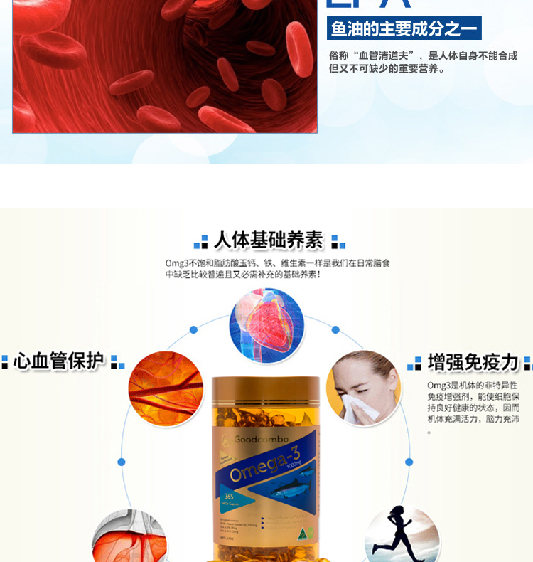 Goodcombo 深海鱼油胶囊 1000毫克 365粒