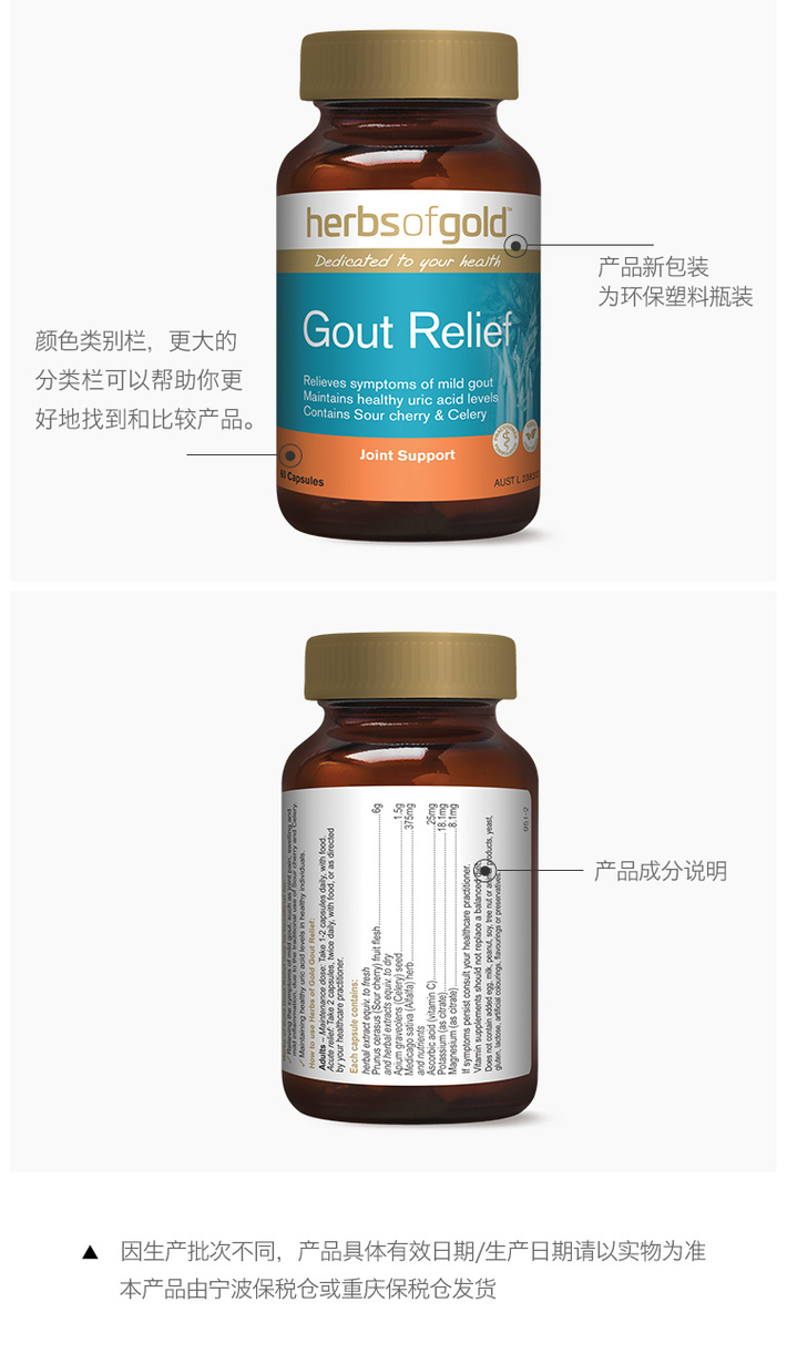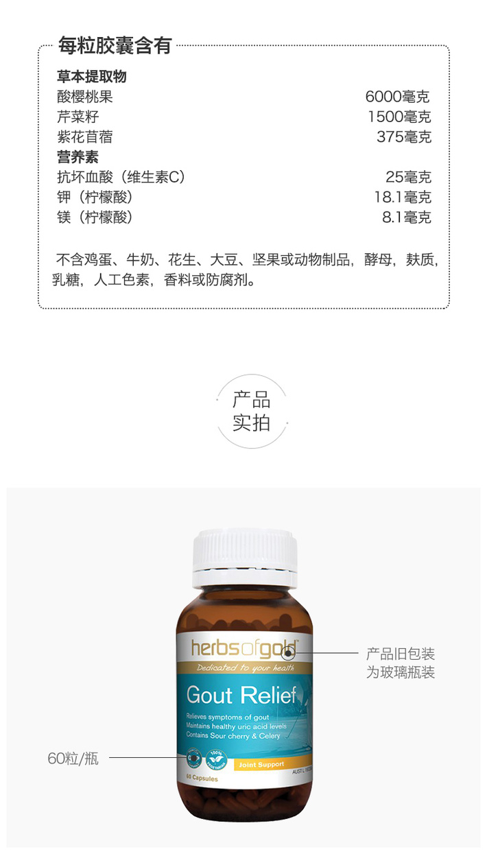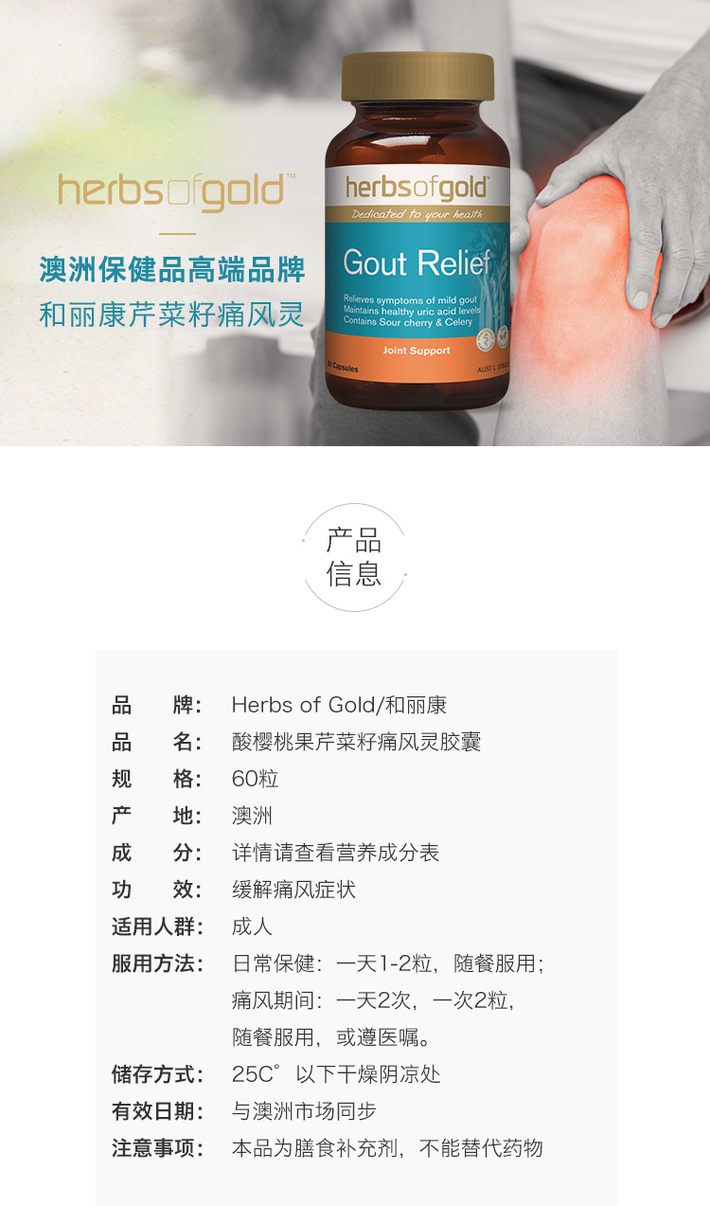 Herbs of Gold 和丽康芹痛风灵 菜籽精华缓解关节疼痛 60粒