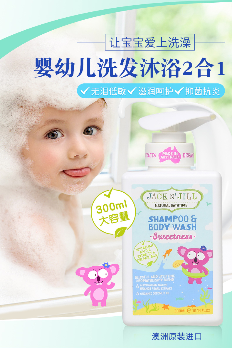 Jack N‘Jill 儿童洗发沐浴二合一 椰子油 考拉 300ml