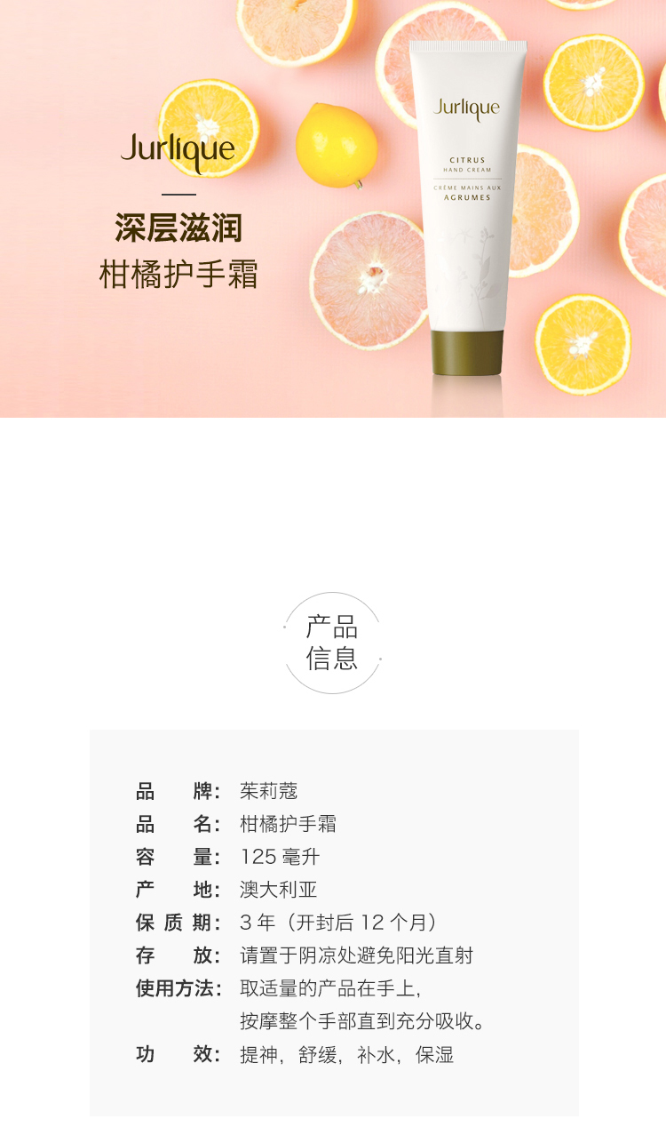 Jurlique 茱莉蔻 护手霜 柑橘味 125ml