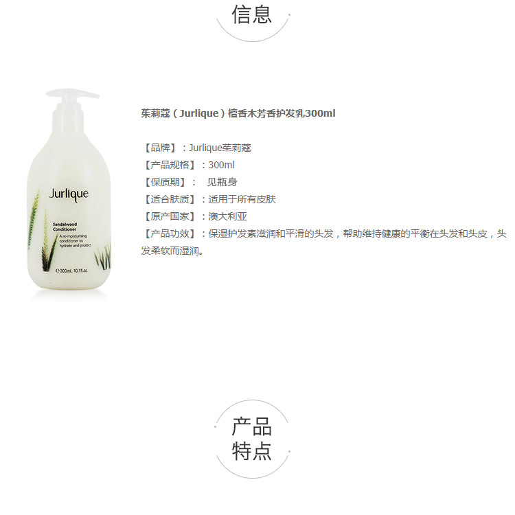 Jurlique 茱莉蔻 檀香木护发素 300ml