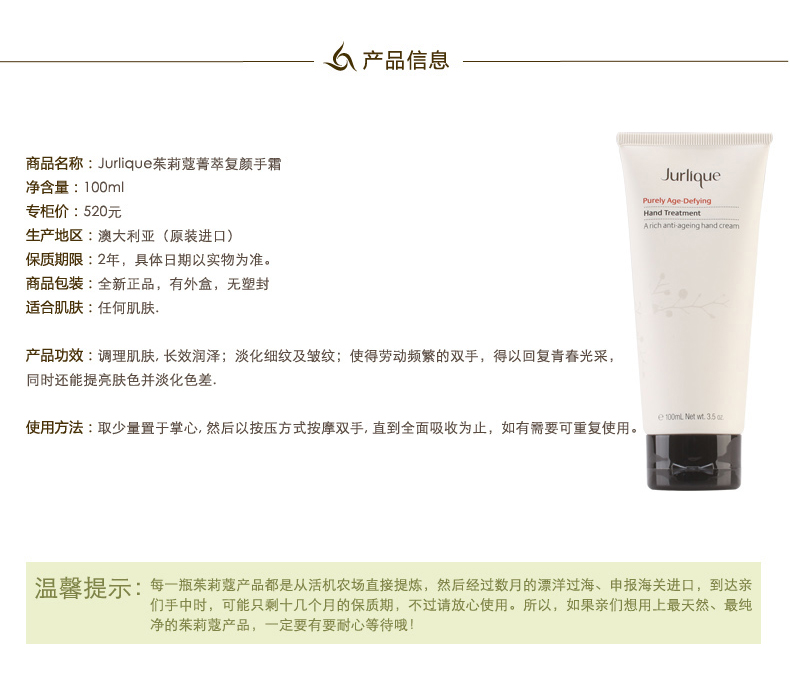 Jurlique 茱莉蔻 活机再生焕肌护手霜 100ml