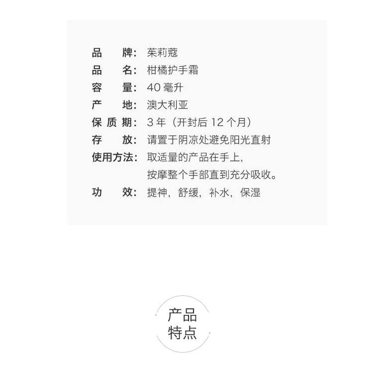 Jurlique 茱莉蔻 滋润护手霜 柑橘味 40ml