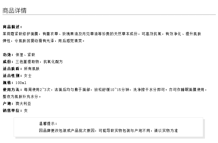 Jurlique 茱莉蔻 紧致修护面膜 100ml