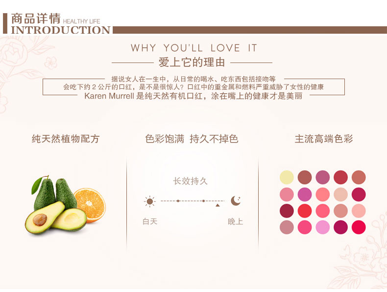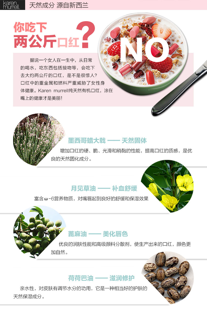 Karen Murrell 14号 纯天然植物持久保湿 新西兰KM有机口红 兰花绽放 4g