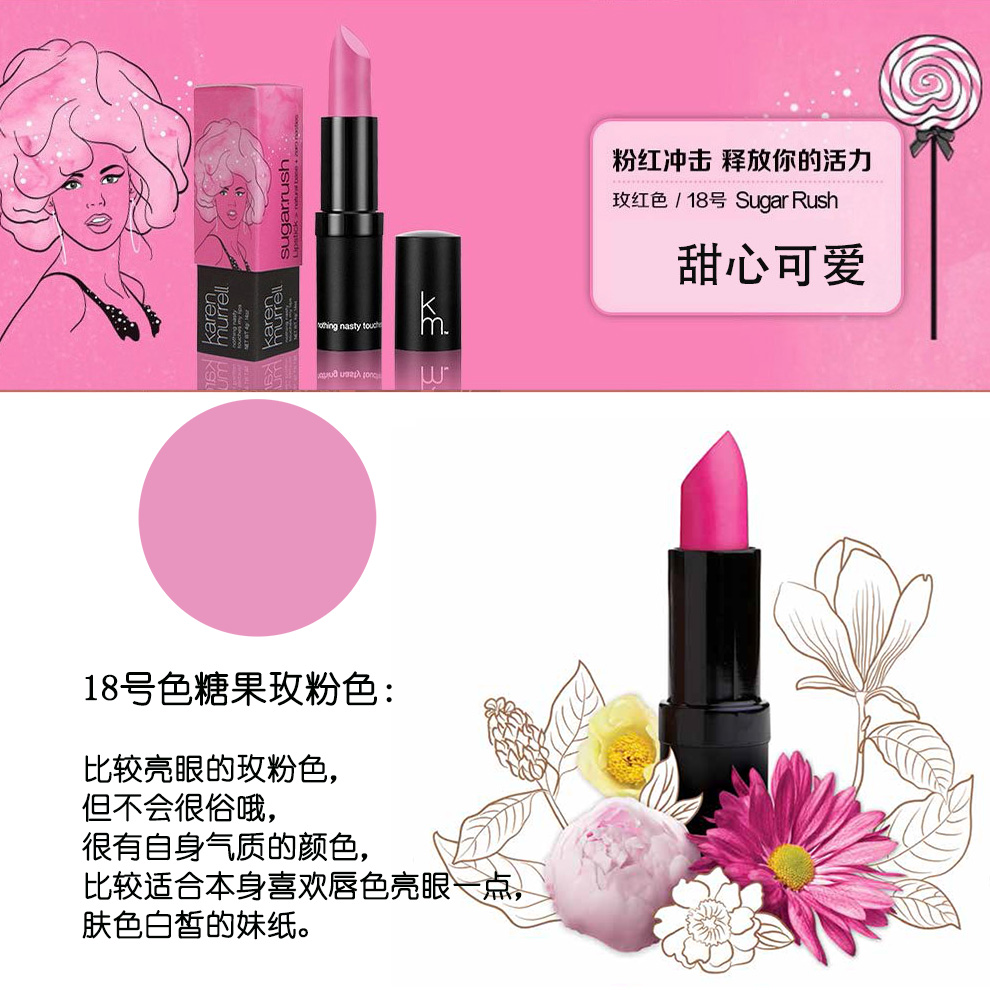 Karen Murrell 19号 纯天然植物持久保湿 新西兰KM有机口红 激情悦动 4g