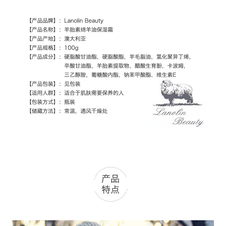 Lanolin beauty 保湿面霜 100g 含羊胎盘素精华