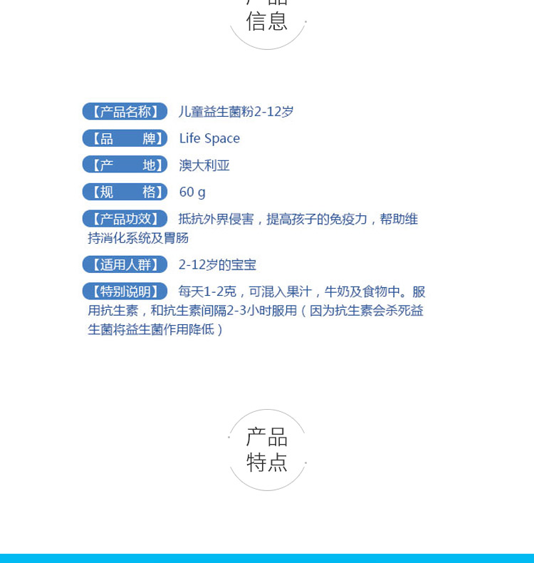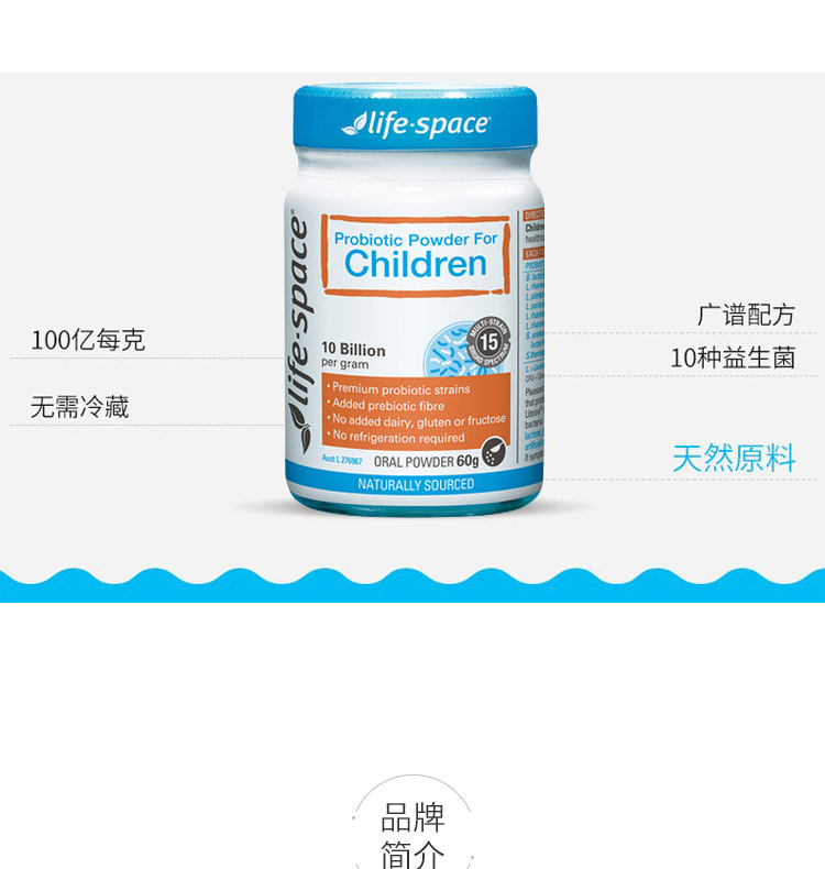Life Space 儿童益生菌粉 适合3-12岁儿童 60克