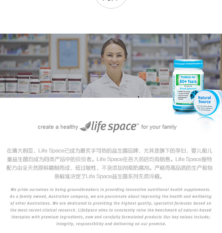 Life Space 60岁以上老年人益生菌 调节肠胃免疫力 60粒
