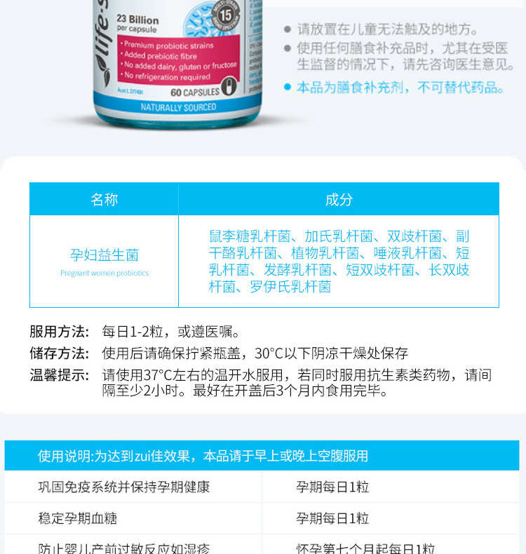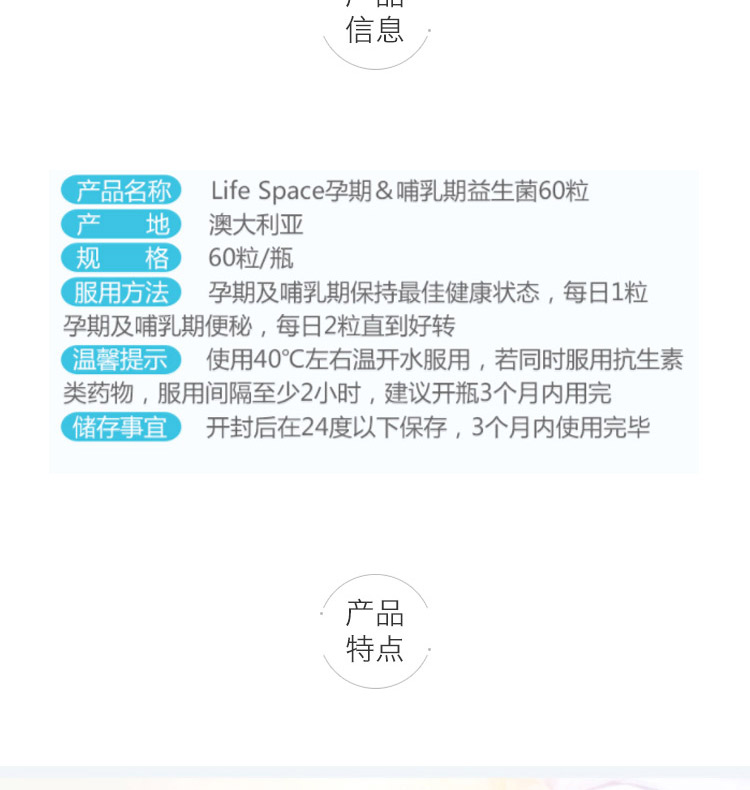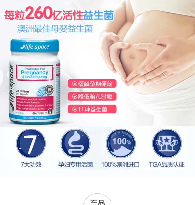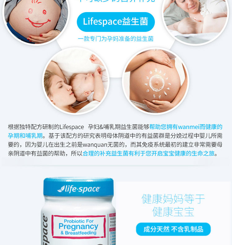 Life Space 孕妇专用益生菌 调节肠胃便秘增强免疫力 60粒
