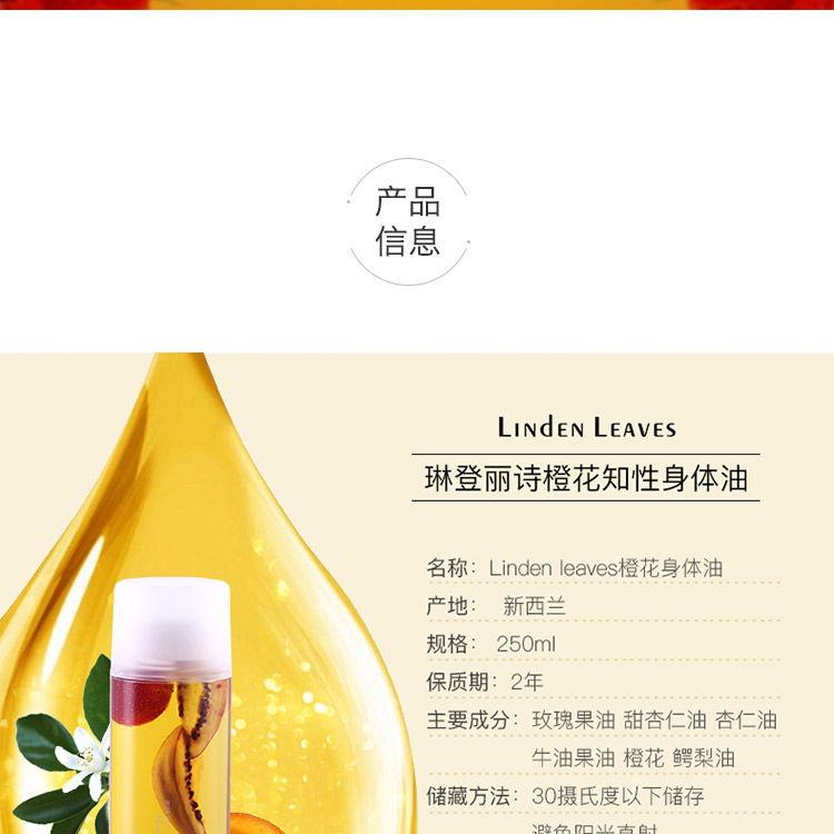 Linden Leaves菩提叶新西兰身体油 保湿滋润柑橘按摩香薰精油60毫升