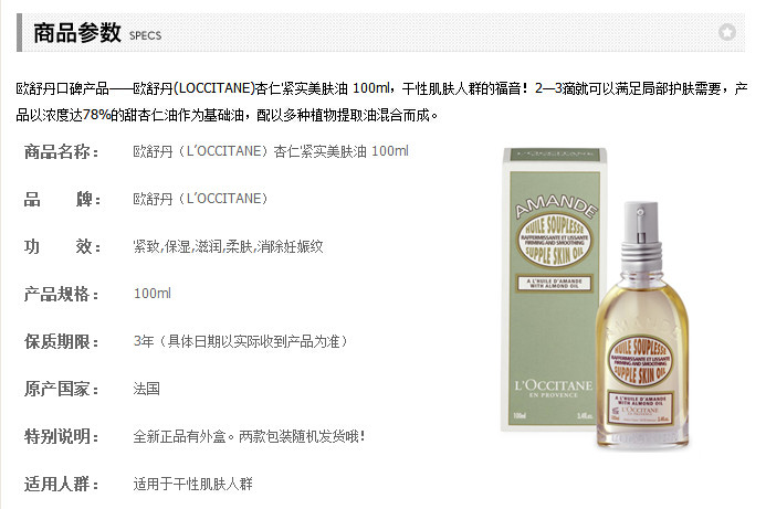 L‘OCCITANE 欧舒丹 杏仁紧实美肤油100ml